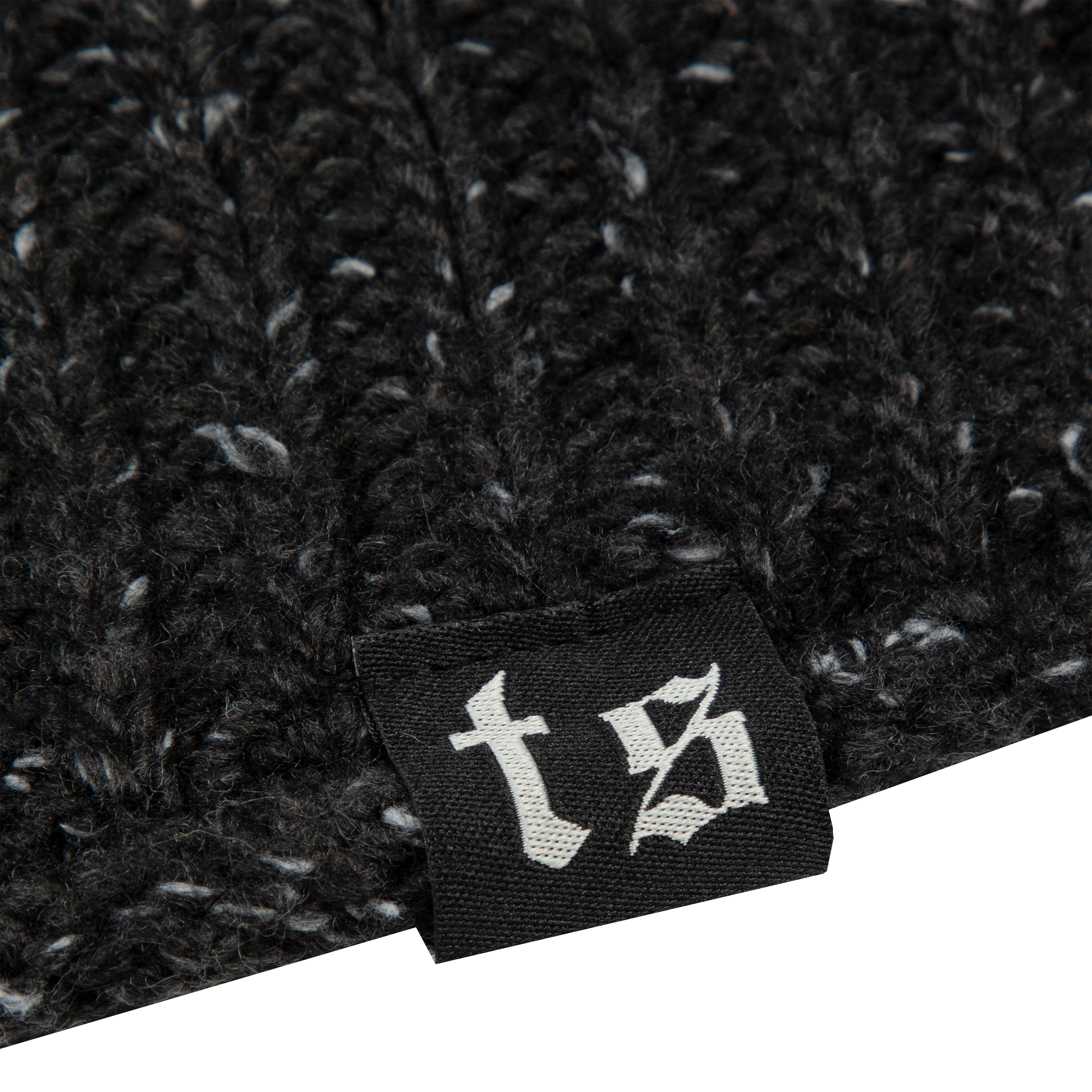 Pull noir à col montant avec inscription « Taylor Swift » et motif serpent tricoté sur le devant avec patch « TS » cousu sur l'ourlet avant gauche du porteur et motif serpent au dos.