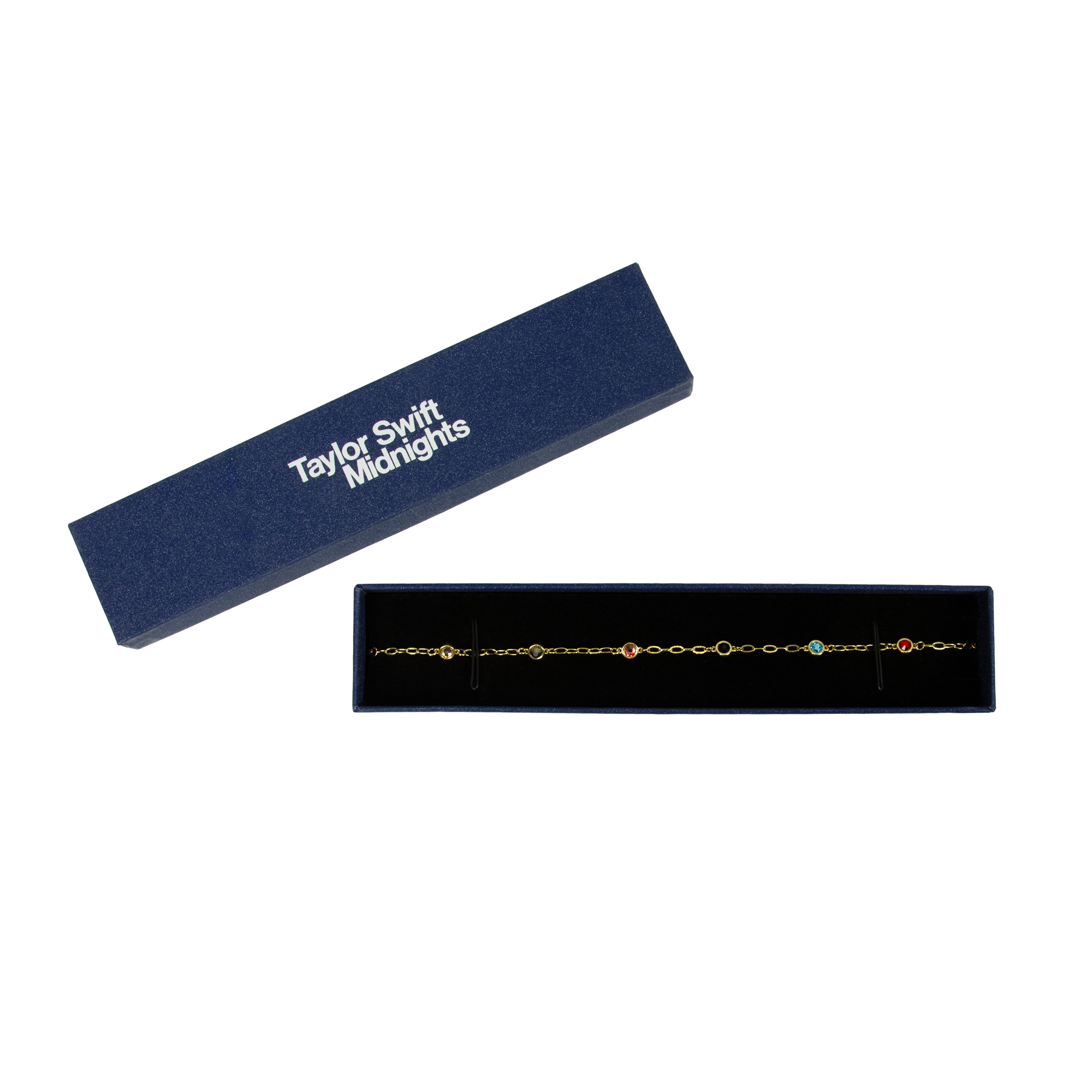 Collier en or avec fermoir réglable et "TS" gravé sur la breloque, avec pierres précieuses multicolores.