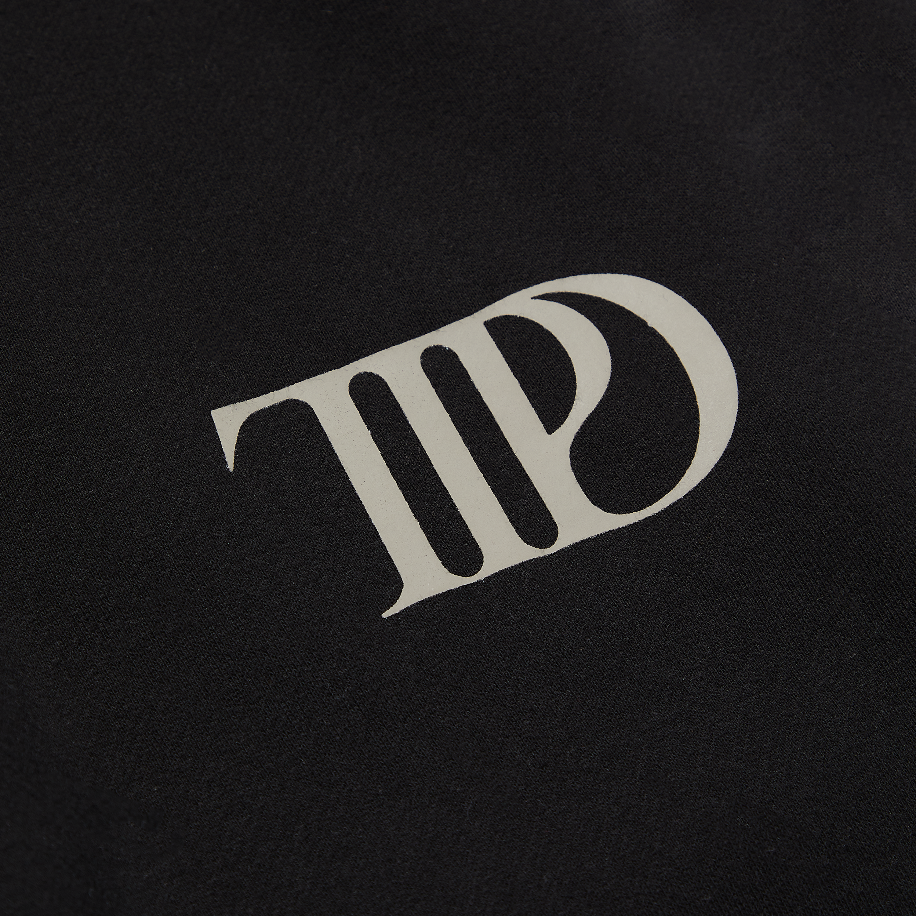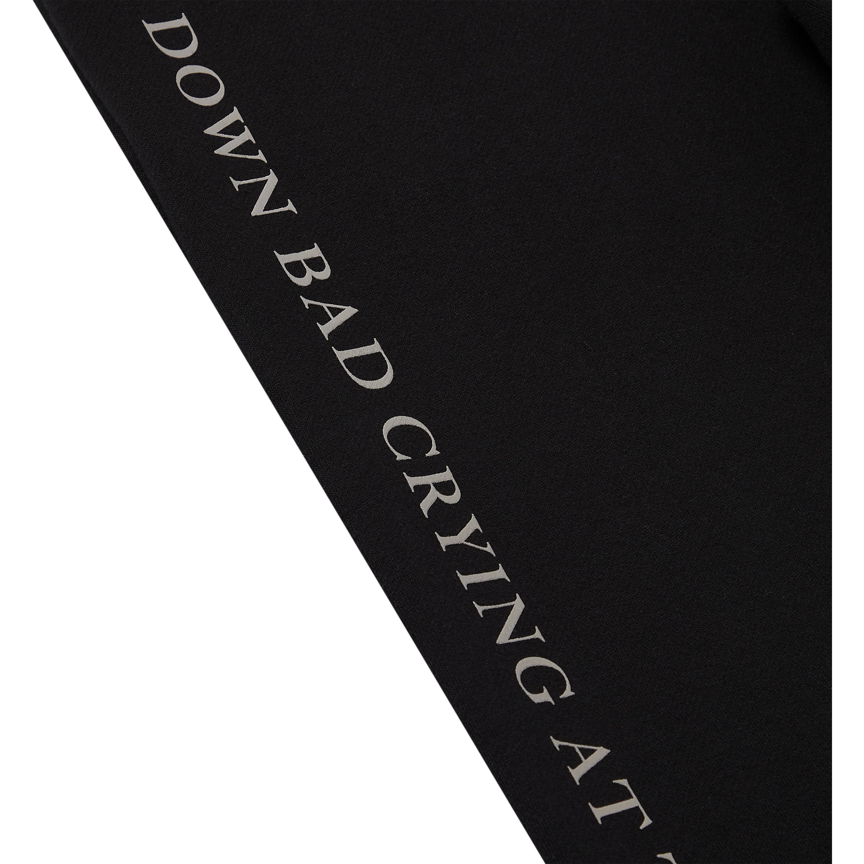 Pantalon de survêtement noir imprimé "Down Bad Crying At The Gym" imprimé sur la jambe droite et "TTPD" album logo sur la jambe gauche. Taille à cordon de serrage et poches latérales.